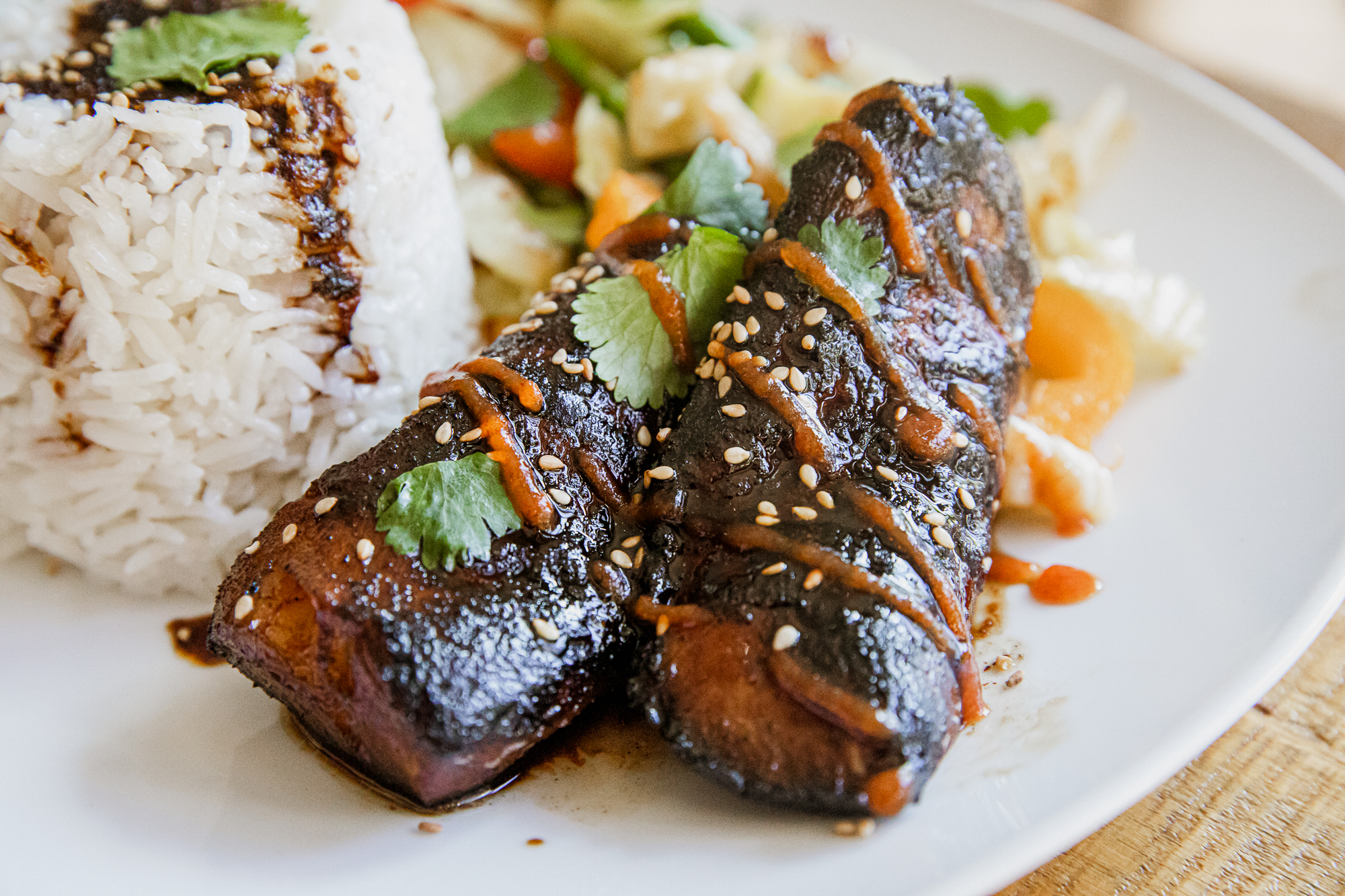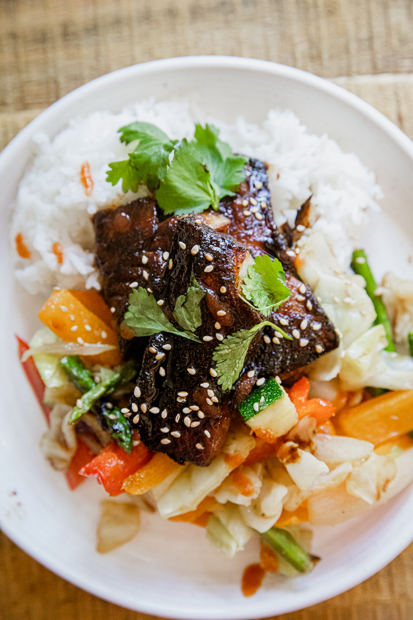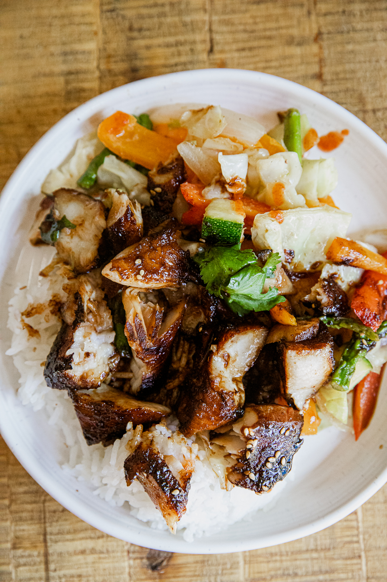 - Serve It Up – Plate with rice, top with cilantro and extra sriracha.