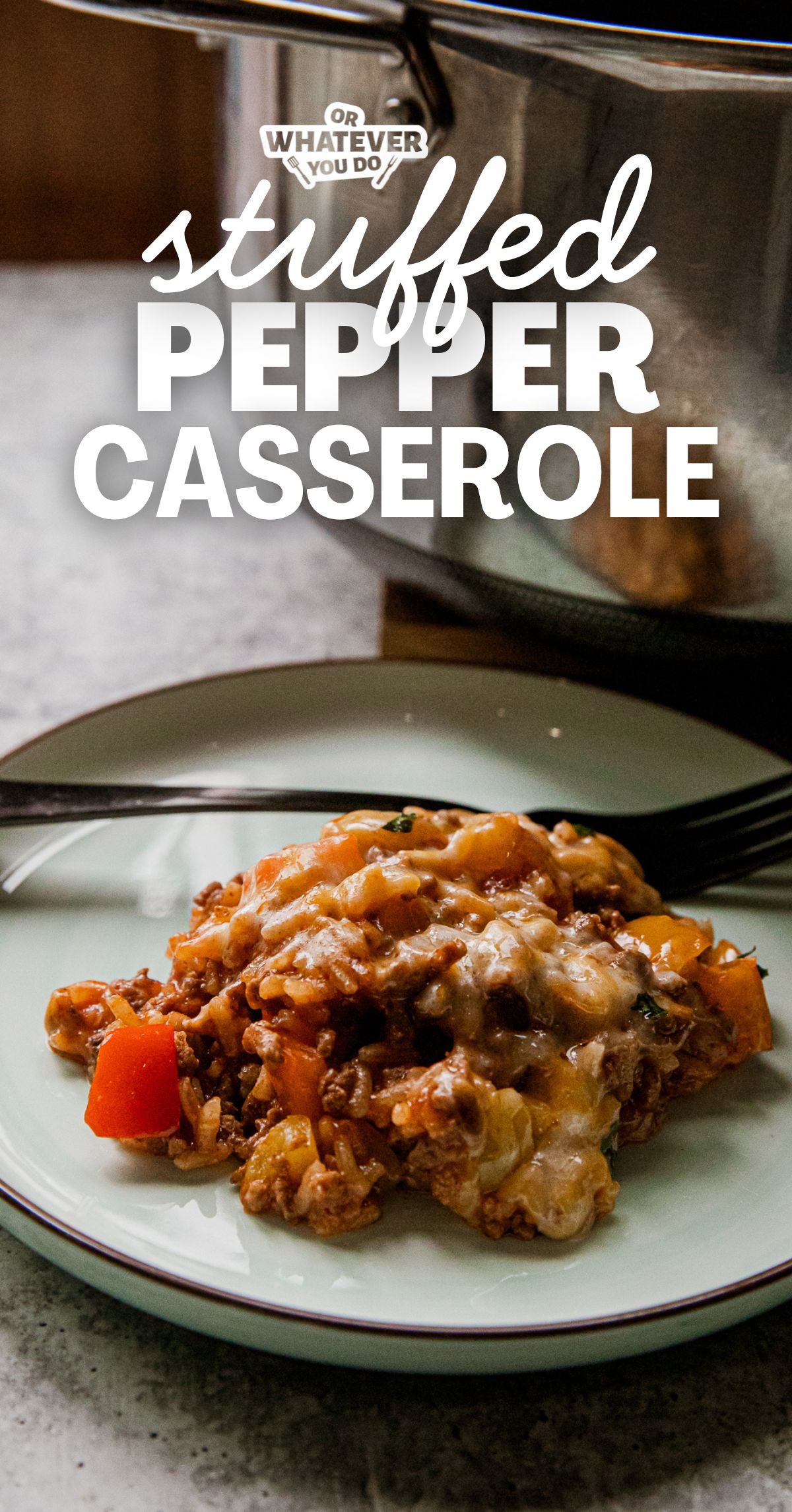 Our easy Stuffed Pepper Casserole is the perfect homemade, quick dinner option to serve your family this week! It is done in under an hour, and the whole crew will love it!