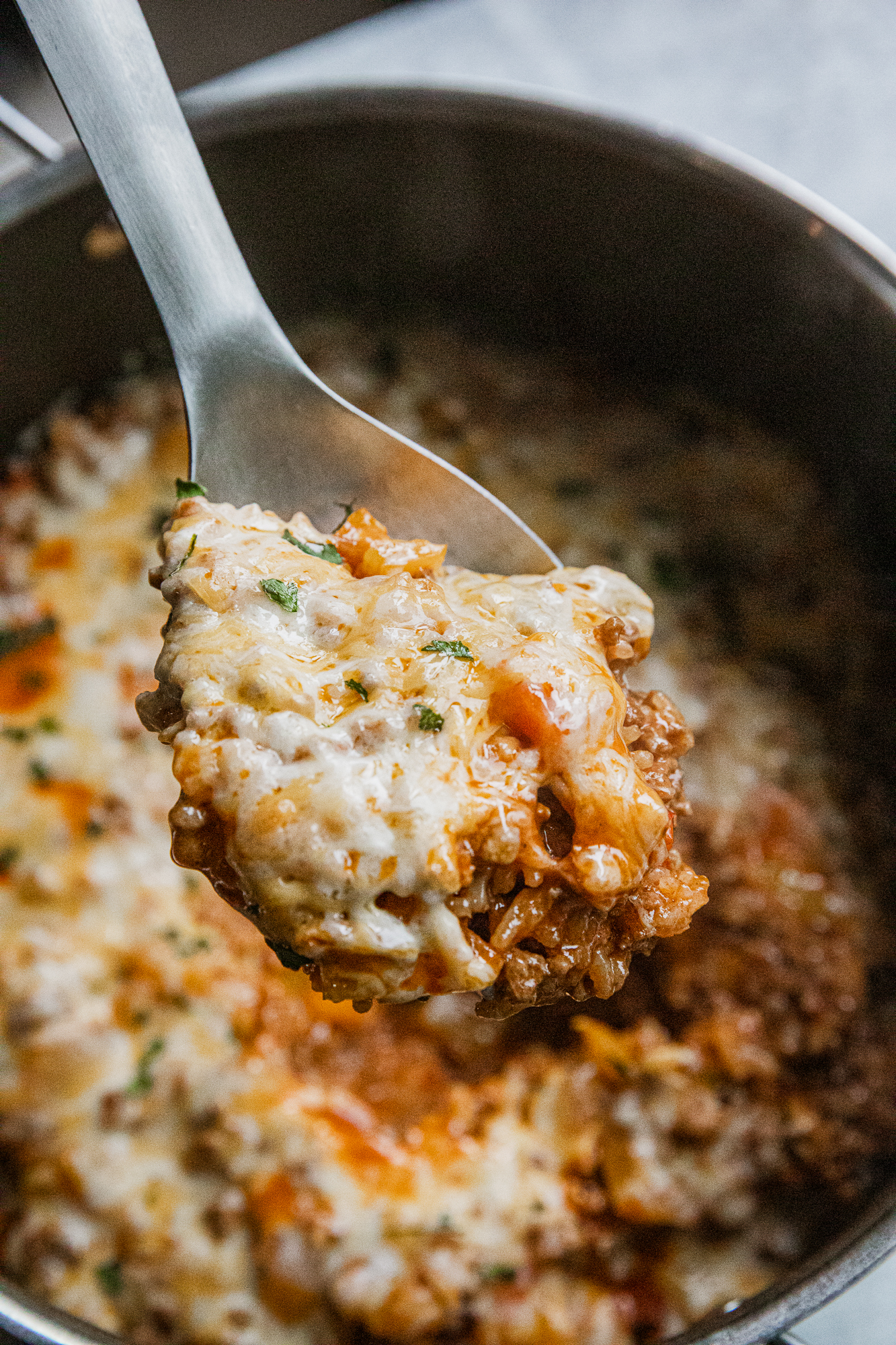 Absolutely! Just brown the meat and assemble everything in a grill-safe baking dish. Cover tightly with foil, and cook on the Traeger for 30-45 minutes. Unwrap it and give it a stir mid-way through the cook. If you want more wood-fired flavor, leave the cover off and add an additional cup of water to the dish.
