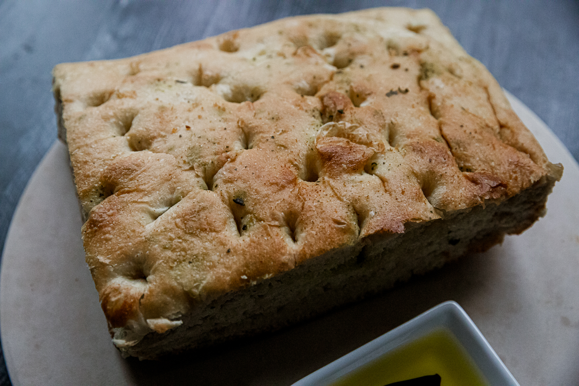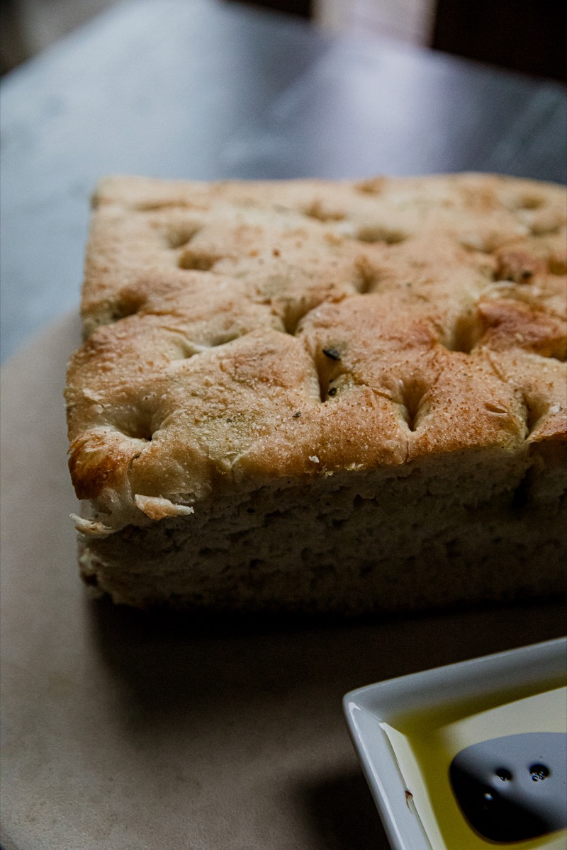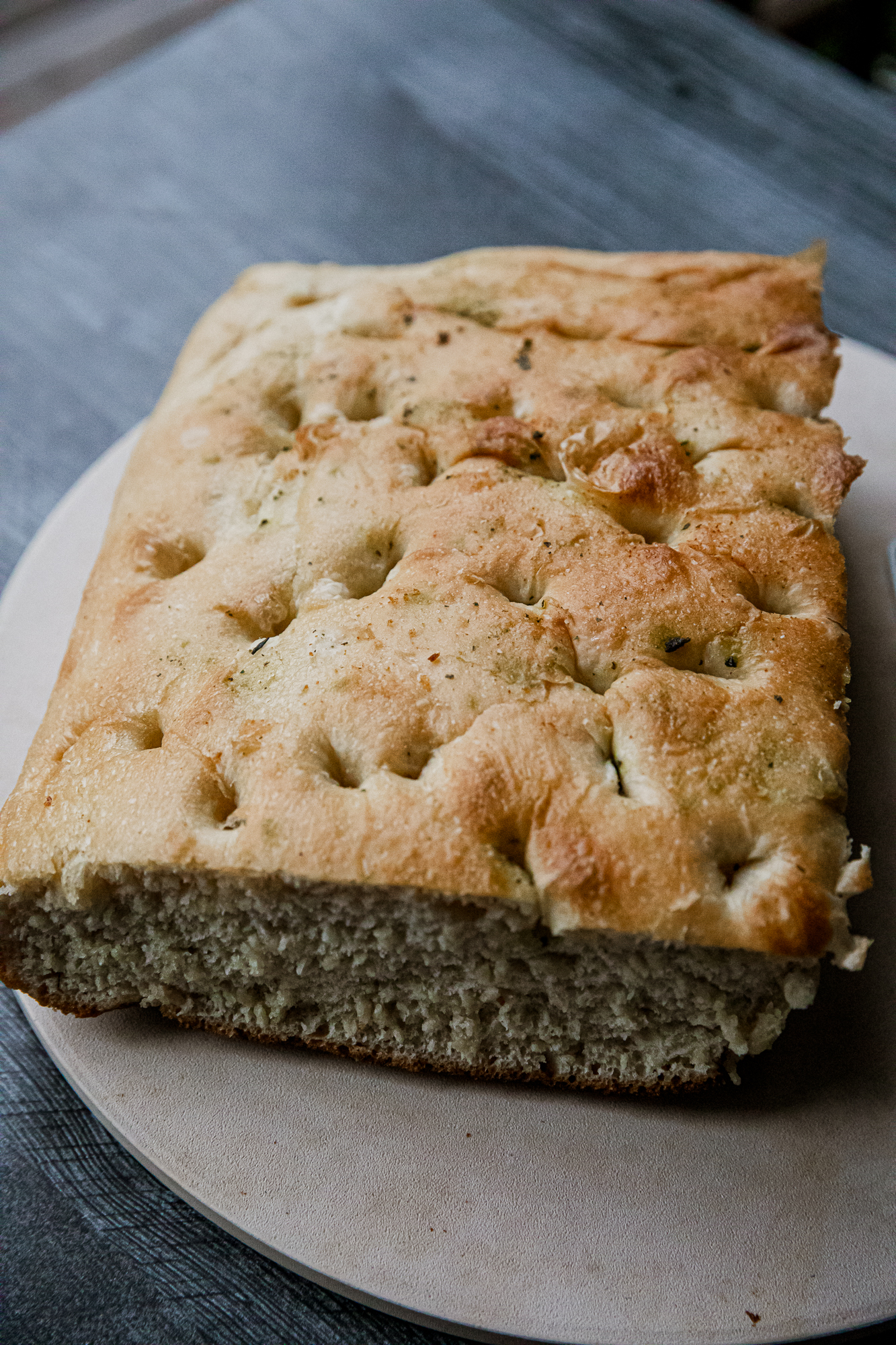 I should really call this “focaccia-style” bread. It differs a bit from the classic focaccia recipes you'll see online and in your local Italian restaurants. We aren't strict traditionalists here. If it works and it tastes good, we roll with it. Here's a breakdown of the differences.