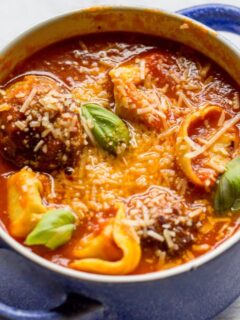 This Meatball Tortellini Soup is a go-to when you need a hearty, satisfying meal that doesn’t take all day. It’s packed with rich tomato broth, tender Italian meatballs, cheesy tortellini, and as much spinach as your people will eat. Tortellini and Meatball Soup This soup really has it all. Not only are there bite-sized meatballs …