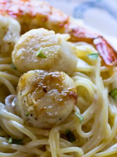 Serve up this simply delicious but highly impressive Traeger Seafood Alfredo any night of the week. Traeger grilled shrimp and scallops are served over the top of a big pile of pasta, and all of it covered with a creamy alfredo sauce. Traeger Seafood Alfredo This seafood alfredo recipe will top your favorite restaurant’s alfredo shrimp, and …