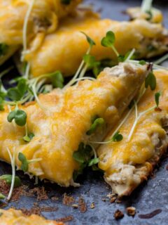 This simple tuna melt flatbread is made amazing by baking it over wood fire on your Traeger pellet grill! Easy, delicious meal option!