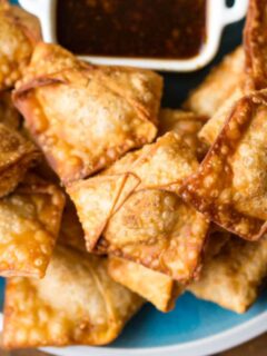 These easy Fried Wontons are made with ground chicken and a mixture of seasonings and then quickly fried and served with a soy-vinegar sauce. Make it spicy with some sriracha, or skip it for the tender-mouthed among you. Fried Wontons A wonton is a dumpling with a meat or vegetable filling inside. My easy-fried wonton …