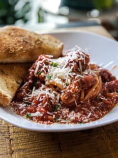 Hey friends, meet my favorite and most frequently made meal, Spaghetti and Meat Sauce. This hearty homemade blend of high-quality real San Marzano tomatoes, fresh herbs and spices, perfectly seasoned and browned ground beef, and a big pile of steaming pasta will quickly have you skipping those overly-expensive fancy jarred versions to make a big …