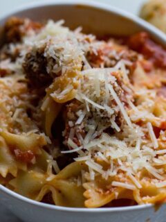 This Farfalle and Meat Sauce is the epitome of classic comfort food. Farfalle noodles cooked al dente and smothered with hearty meat sauce, then adorned with copious amounts of freshly shredded Parmesan cheese. This dish is a hit with me, my family, and anyone who loves Italian cuisine. Farfalle with Meat Sauce Noodles and tomato-based sauces …