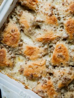 This Traeger Biscuits and Gravy Casserole recipe is a simple, hearty breakfast with layers of buttery biscuits and creamy homemade sausage gravy. The biscuits bake up crisp on top while soaking in the homemade gravy underneath. Traeger Biscuits and Gravy Casserole Biscuits and gravy are currently a family favorite here. I’ve started stocking the ingredients …