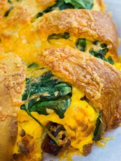 A Breakfast Crescent Ring with Sausage and Egg is the perfect start to a busy morning. Are you feeding a crowd? Make it easy with this amazing breakfast. Breakfast Crescent Roll Ring with Sausage and Egg This breakfast ring is full of cheesy scrambled eggs, sausage links, and spinach. Just bake, slice, and serve. You …